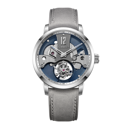 The new Witness Tourbillon marks a luminous evolution in Peacock’s haute horlogerie legacy — a celebration of modern elegance and timeless craftsmanship. From the sculpted case lines to the rhythmic pulse of its movement, from the interplay of light on the dial to the tactile luxury of its strap, every detail has been meticulously refined. Inspired by the majestic grace of a peacock unfurling its feathers, this creation merges Chinese symmetry with mechanical poise. Hand-guilloché textures, feather-shaped bridges, and the intricate floating tourbillon embody harmony between nature and engineering. A watch designed not merely to keep time, but to witness life’s defining moments — quietly articulating sophistication, taste, and inner strength.